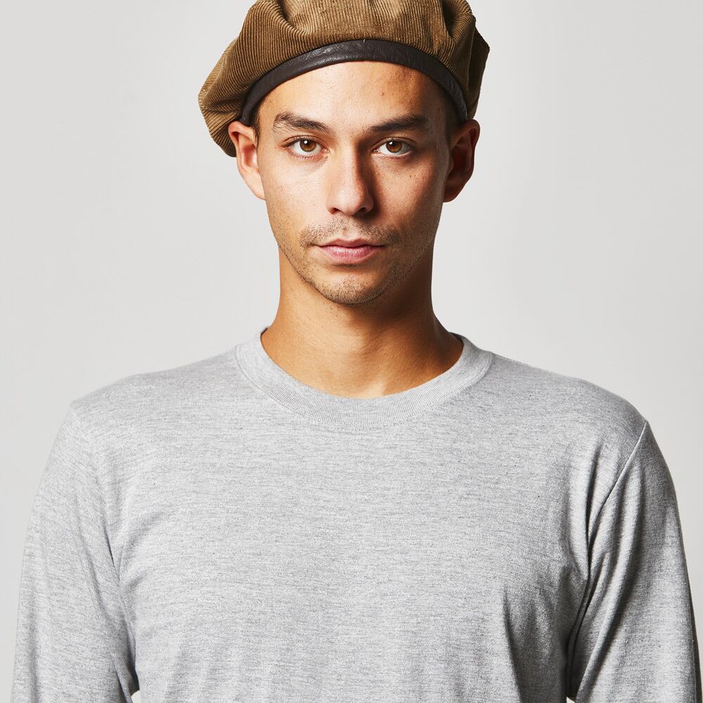 胸のロゴは刺繍で高級感を演出。ボディは「よれない・透けない・長持ちする」といった三拍子がそろった上質な一枚。丈夫な襟元を実現するため、首回りの縫製に「ダブルステッチ」を採用。長年愛用いただいてもきちんとした首回りを保ちます。